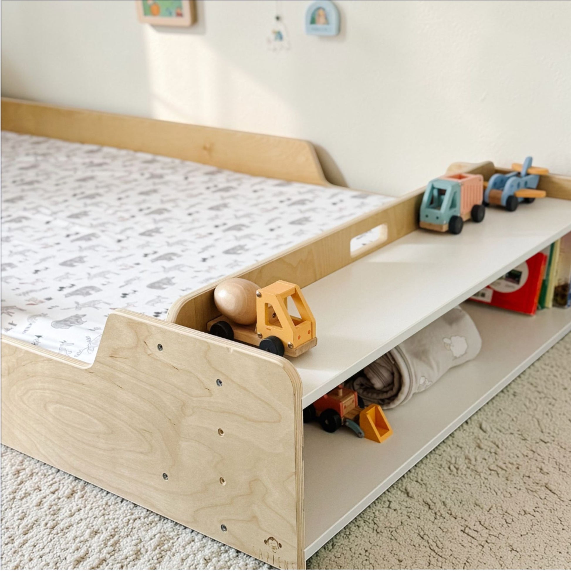 APPLE - Lit Montessori au sol avec barrières et étagères